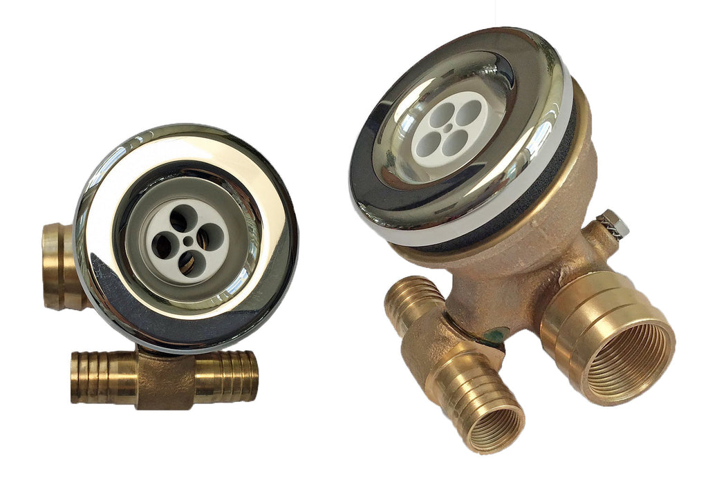 Wasseranschluss 11/2" IG - mit 8 Minijet 19, Düseneinsatz 4xØ8mm - 4 x Ansaugfitting-BK, 2"" IG mit Blende Ø200 haarfangsicher nach DIN 13451 - inkl. werkseitiger Vormontage