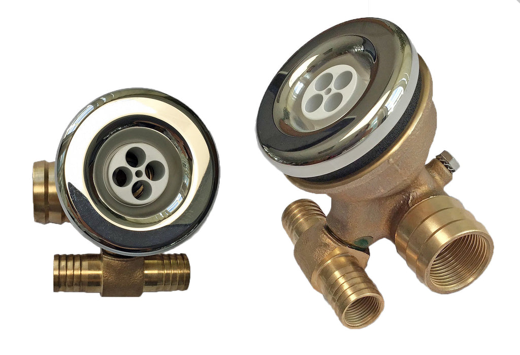 Wasseranschluss 11/2" IG - mit 6 Minijet 19, Düseneinsatz 4xØ8mm - 4 x Ansaugfitting-BK, 2"" IG mit Blende Ø200 haarfangsicher nach DIN 13451 - inkl. werkseitiger Vormontage